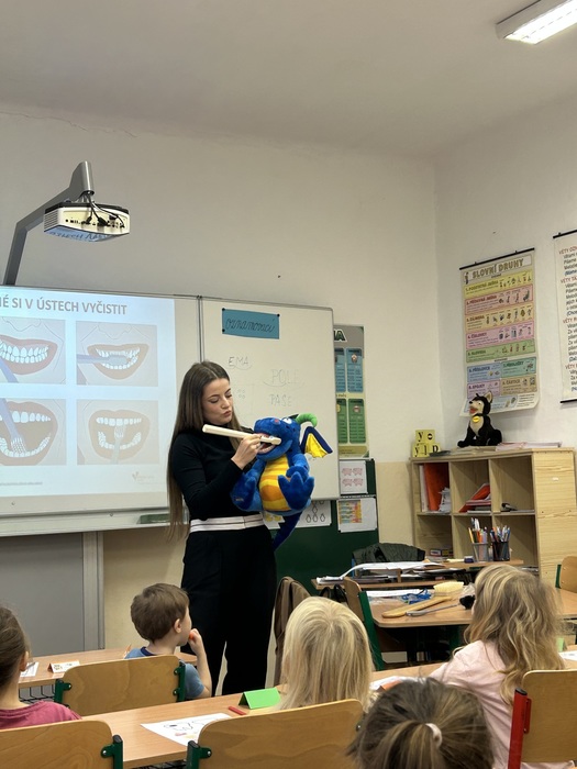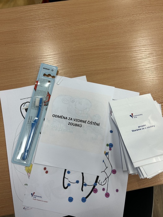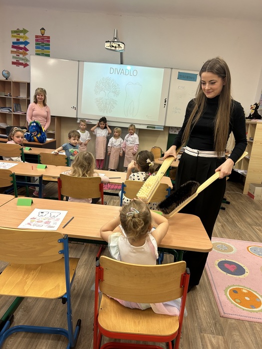 26.11. proběhlo pokračování projektu "zdravé zoubky". Tentokrát si děti procvičily správnou techniku čištění zoubků a zábavnou formou zkoušely různé dentální pomůcky.