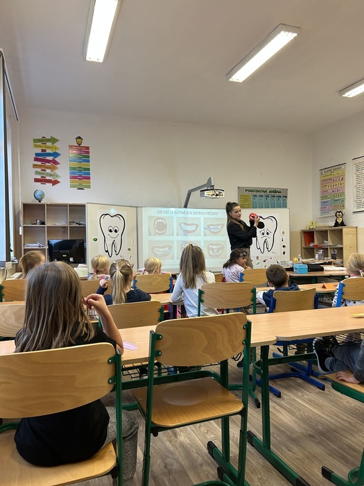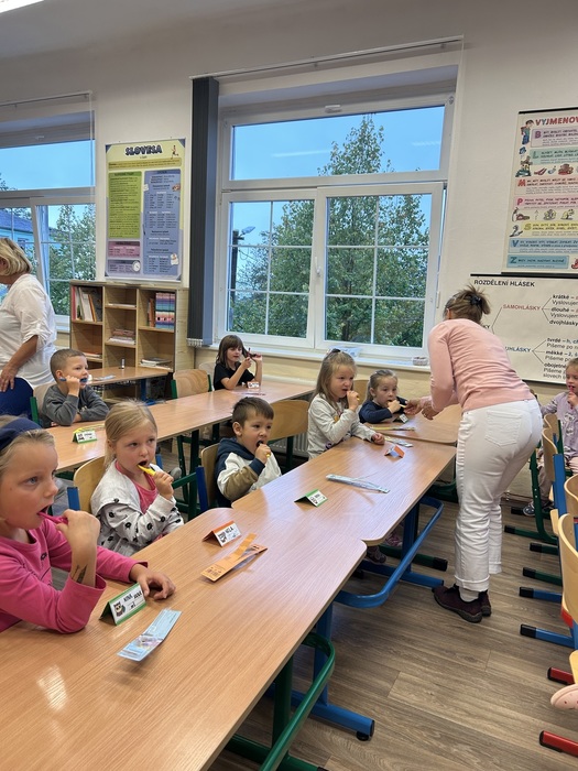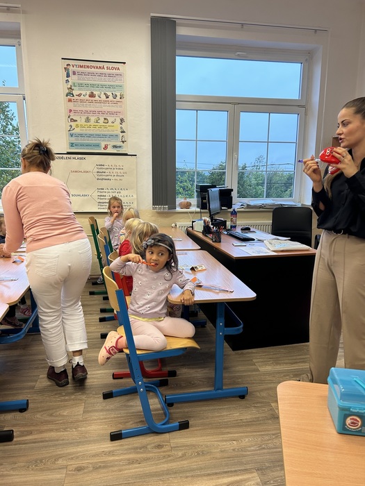 Dne 1. října jsme u nás přivítali skvělé lektorky, které naše děti z MŠ i ZŠ seznámily se správnou zubní hygienou, poradily s výběrem zubního kartáčku a procvičily s dětmi zubní techniku čištění zoubků. Děti si jako dárek odnesly zubní kartáček, kalendář a omalovánky. Budeme se těšit na další přednášku.