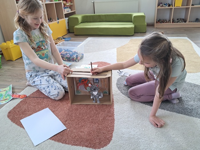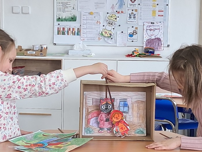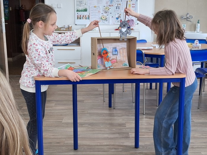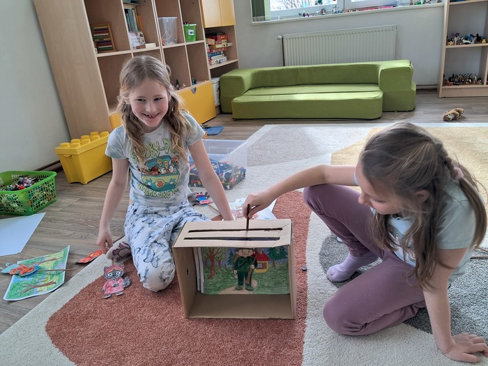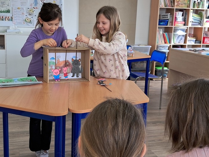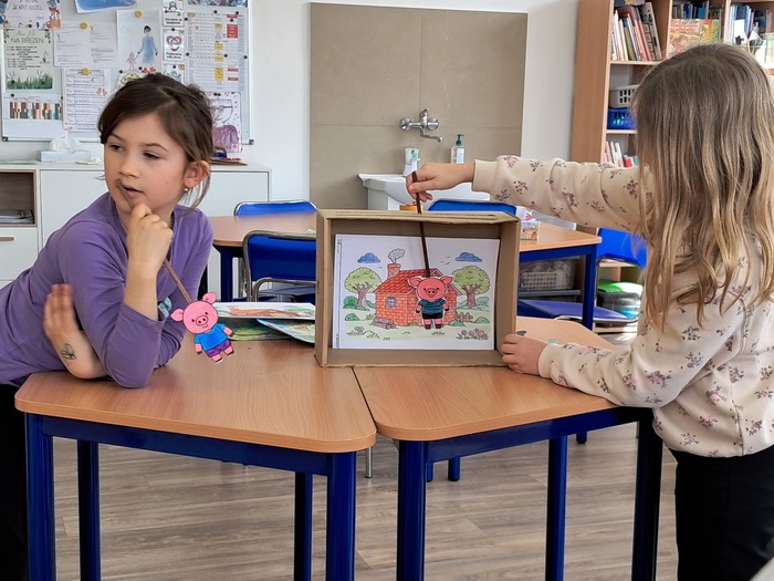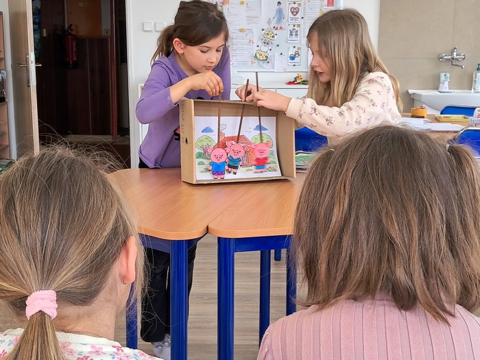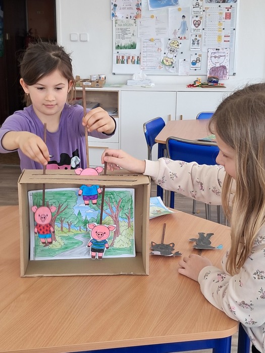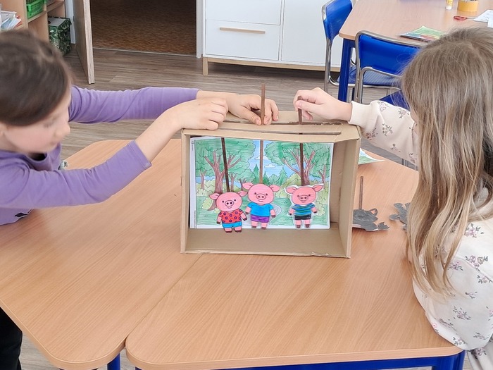Vyrobili jsme si loutkové divadlo. Děti si s nadšením zahrály pohádky O červené Karkulce a Tři prasátka.