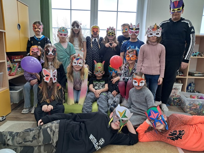 Masopustní období si užíváme. Tvoříme škrabošky, masky vybarvujeme a vytváříme z lega. Pečeme koláče z modelíny i z mozaiky. Sledujeme epizodu Jak to bylo o Masopustu nebo vnímáme pestrost a nápaditost karnevalových kostýmů v Brazílii. V tělocvičně hrajeme hru Chyť masku a společně si užíváme masopustní veselí nejen s balónky.
