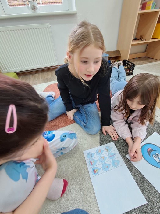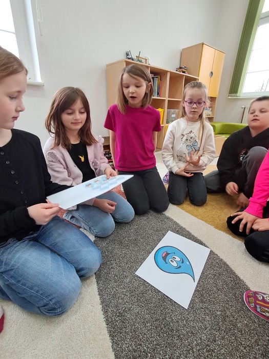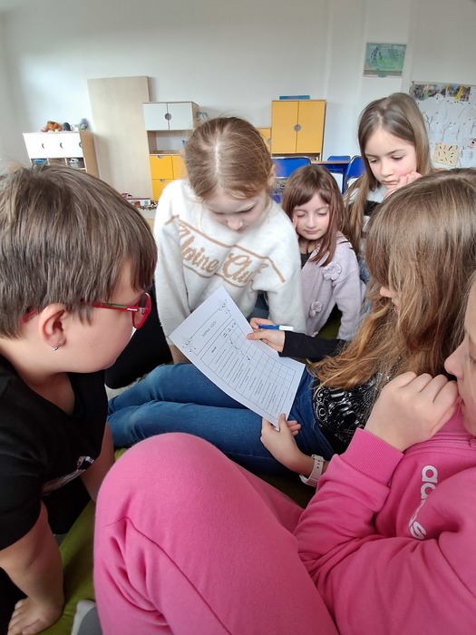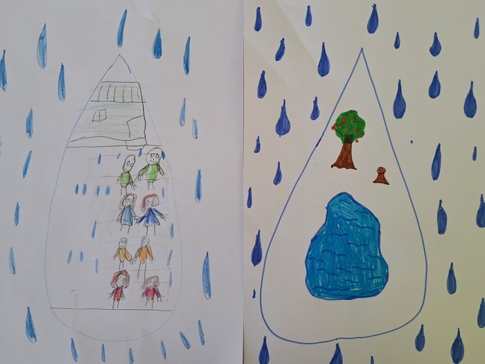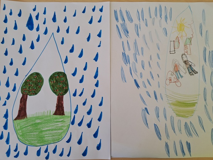 Hovoříme o tom, proč je voda v životě důležitá. Čteme si příběh O kapičce, kreslíme na téma Co viděla moje kapka vody a ve skupinkách pak obhajujeme svá tvrzení formou otázek a odpovědí.