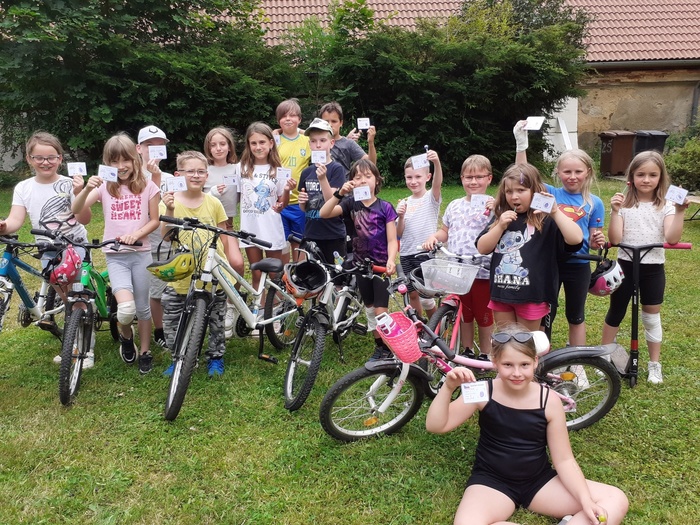 Děti předvedly bravurní jízdu na kole, vyzkoušely si jízdu zručnosti, závod a získaly svůj první řidičský průkaz.