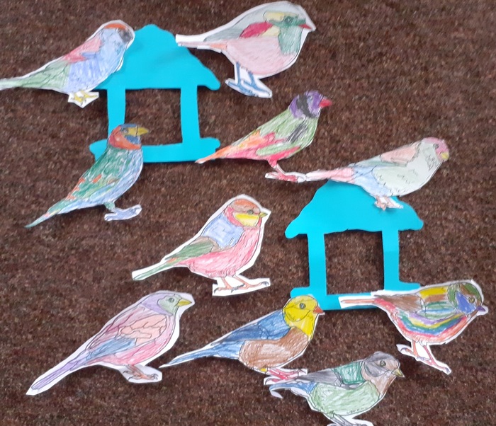 V družině poznáváme známé druhy přezimujících ptáčků, seznamujeme se s jejich zvuky v krásné knížce od spolužačky, učíme se hrou.