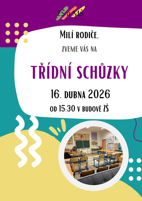 srdečně vás zveme na třídní schůzky, které se konají 16. dubna 2026 od 15:30 v budově ZŠ.