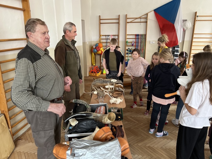 Děkujeme myslivcům Václavu Svobodovi a Jiřímu Maříkovi z Mysliveckého spolku Plesná za poutavé vyprávění a zajímavé ukázky.