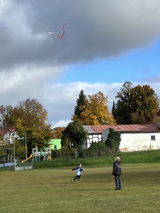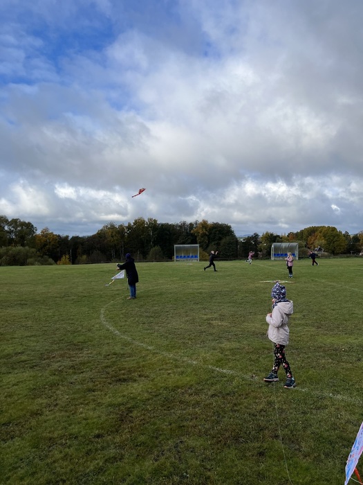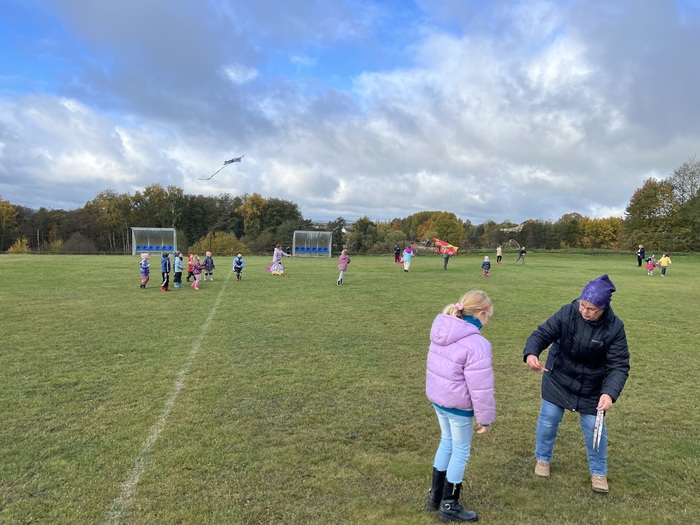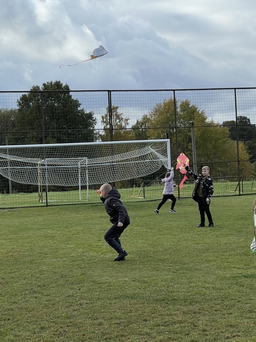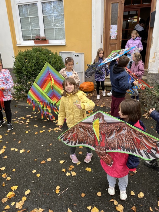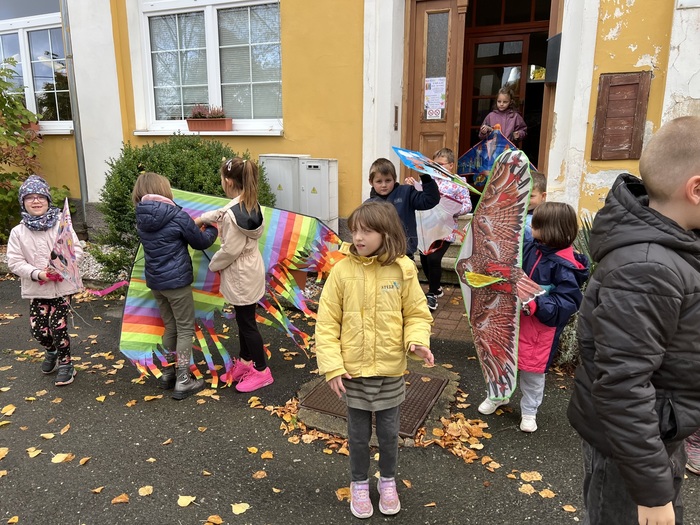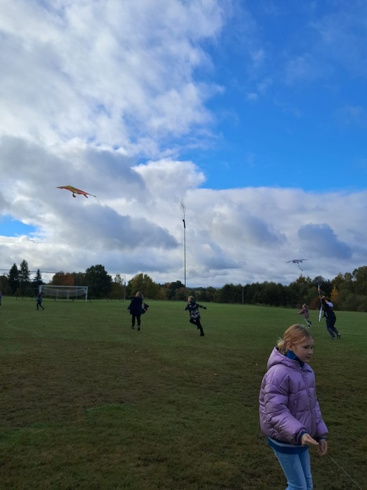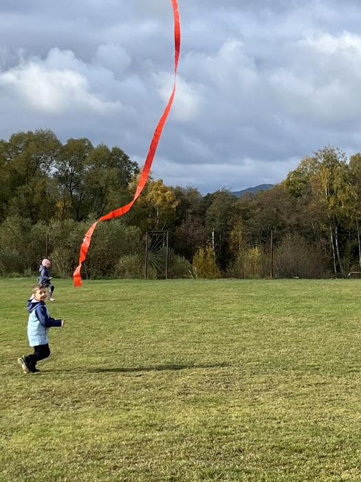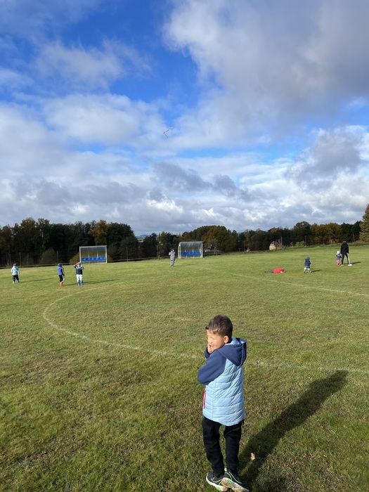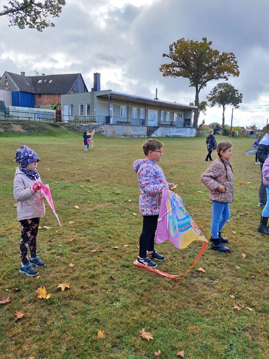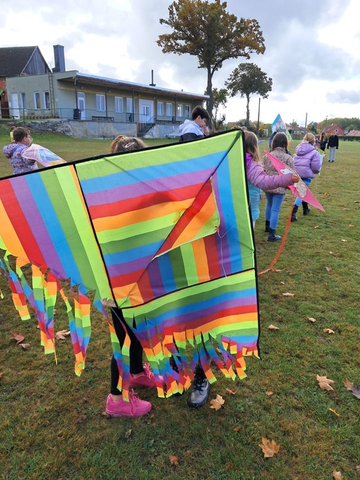 Závěrečnou aktivitou projektového dne bylo společné pouštění draků na fotbalovém hřišti. Žáci naší školy spolu s dětmi z MŠ běhali po hřišti a sledovali, jak barevní draci stoupají do vzduchu.