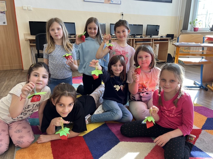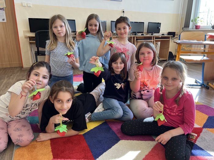 Ve čtvrtek 5. 3. 2026 se v kroužku Tvořivá dílna – Jahůdka děti věnovaly tvoření z papíru. S využitím barevných papírů, nůžek a lepidla vznikaly krásné výrobky s motivem jahůdky.