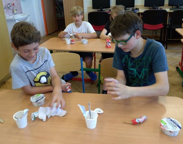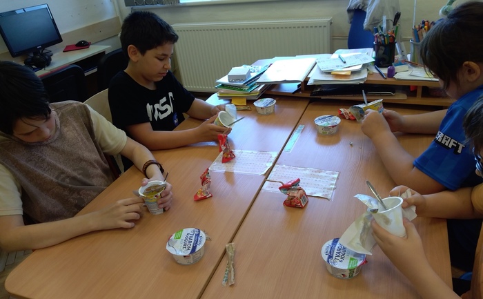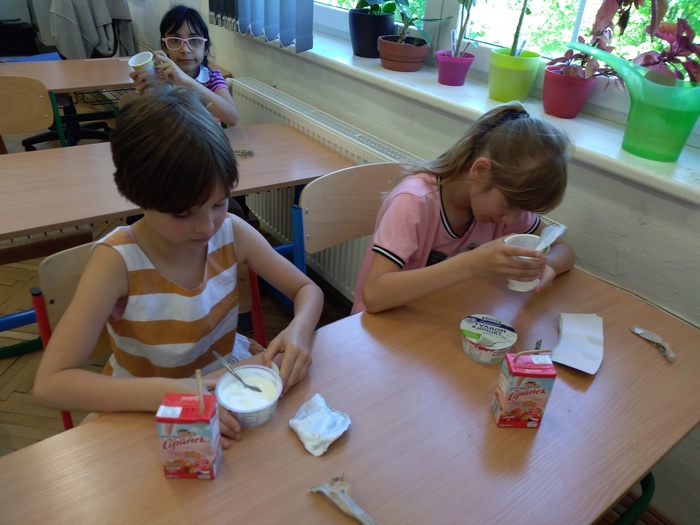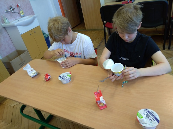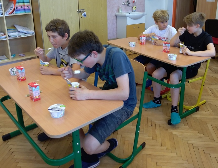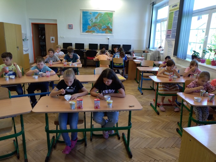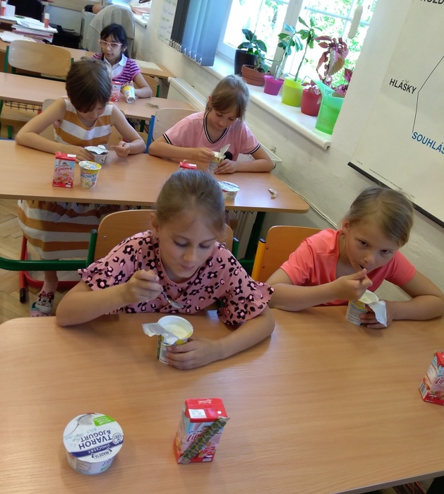 V rámci projektu jsme získali ochutnávku mléčných výrobků pro žáky ZDARMA. Dne 19.5.2022 tak mohli ochutnat tyto výrobky: Lipánek jahodové mlíčko, Lipánek tvarohový a Jihočeský tvaroh s jogurtem. Po skončení ochutnávky se žáci správným způsobem postarali o obalový materiál a společně ho roztřídili do určených nádob k jejich recyklaci.