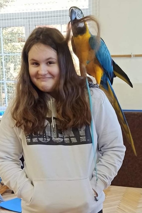Beseda o životě papoušků, kterou nadšeně sledovaly nejen děti, ale i paní učitelky.