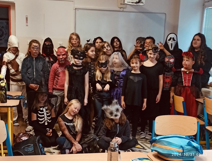 Takto jsme ve škole poslední den v říjnu slavili HALLOWEEN. Děti procházely jednotlivá stanoviště strašidelné stezky a plnily úkoly. Na závěr si všechna strašidla zatančila na "STRAŠIDELNÉ DISKOTÉCE".