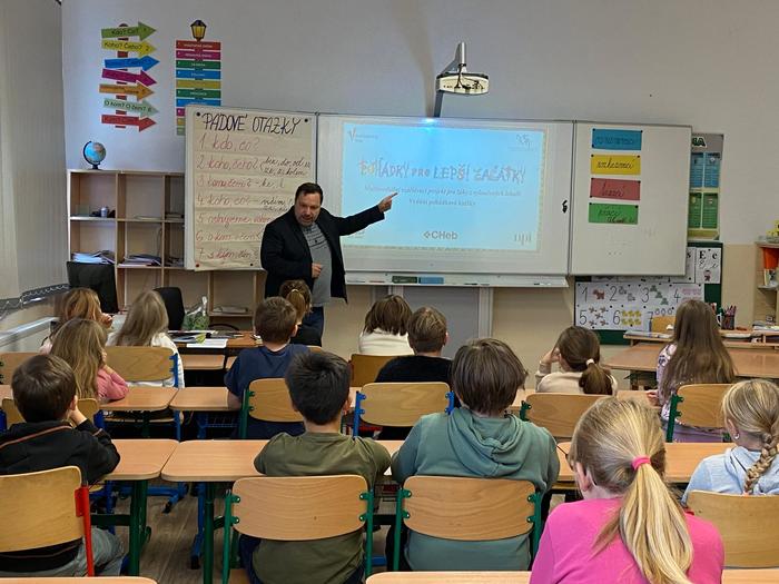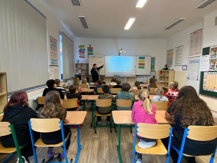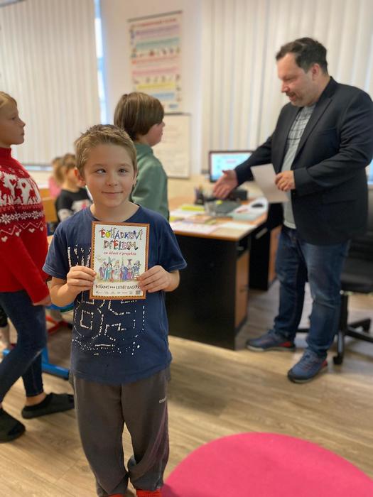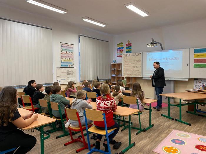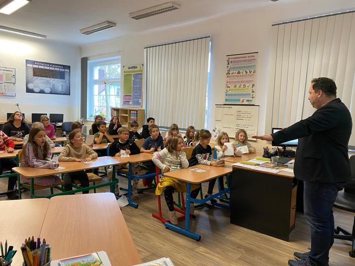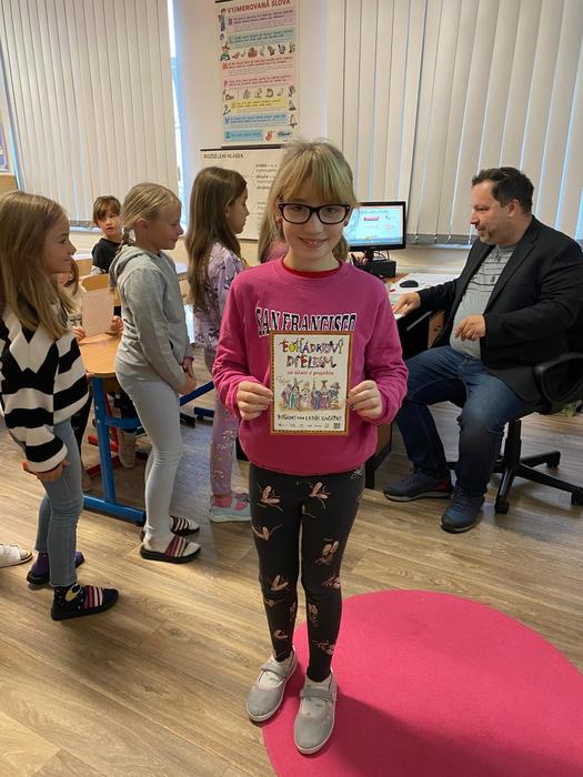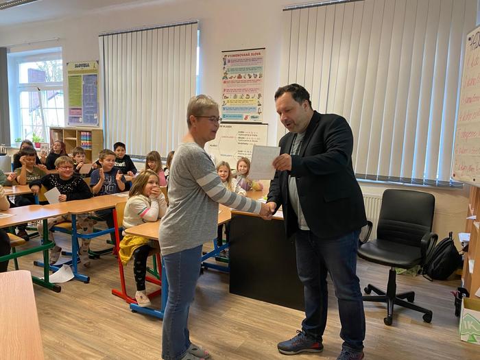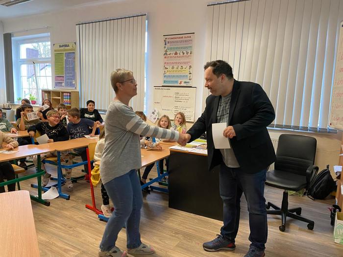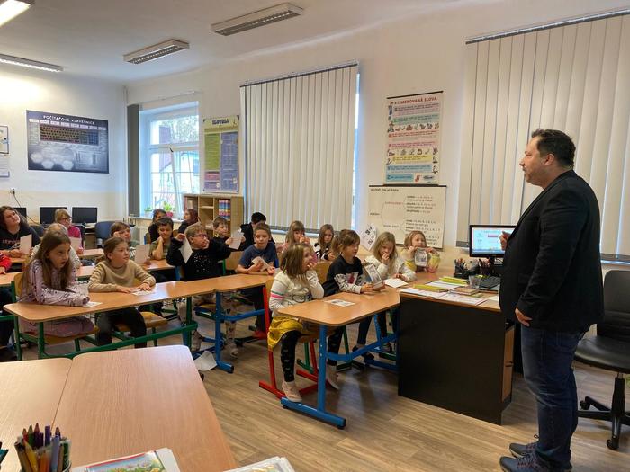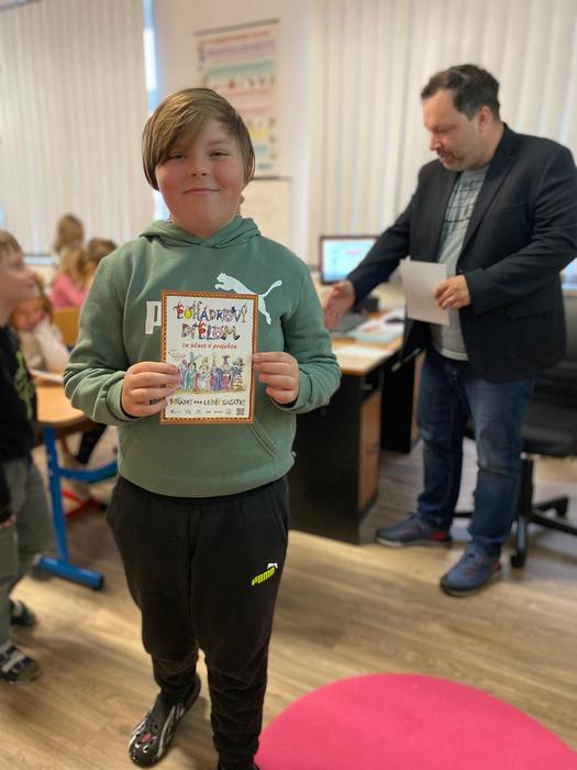 V rámci tohoto projektu 7. listopadu naši školu navštívil samotný autor pohádek, spisovatel Petr Březina. Nejdříve se seznámil s našimi nejmenšími dětmi v mateřské škole a po té besedoval se školáky o knize, kterou děti dostanou k vysvědčení na konci školního roku.