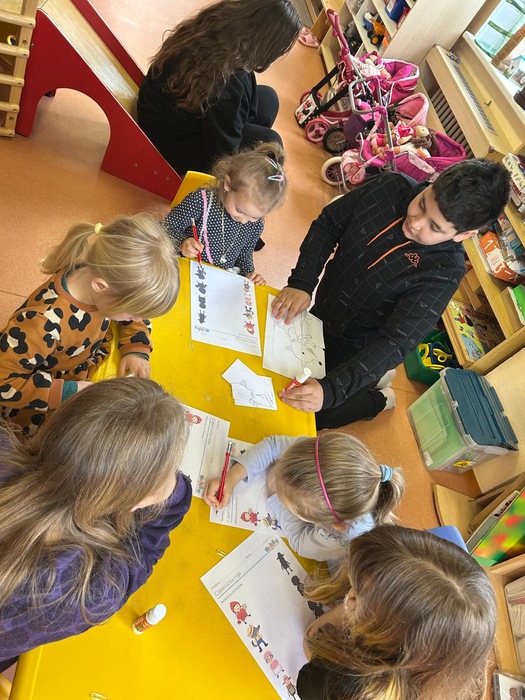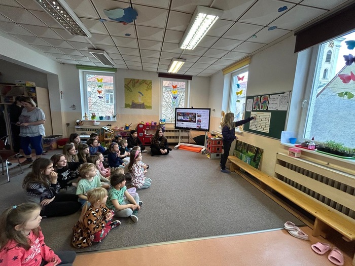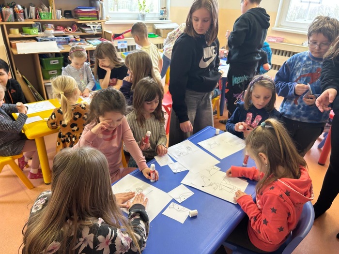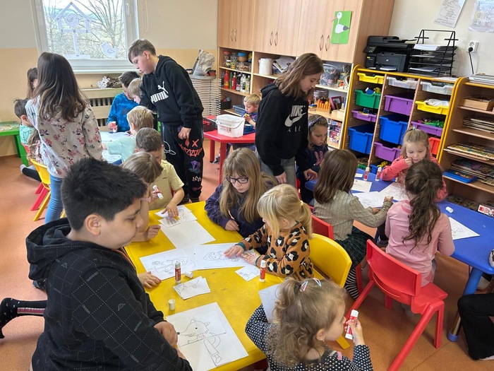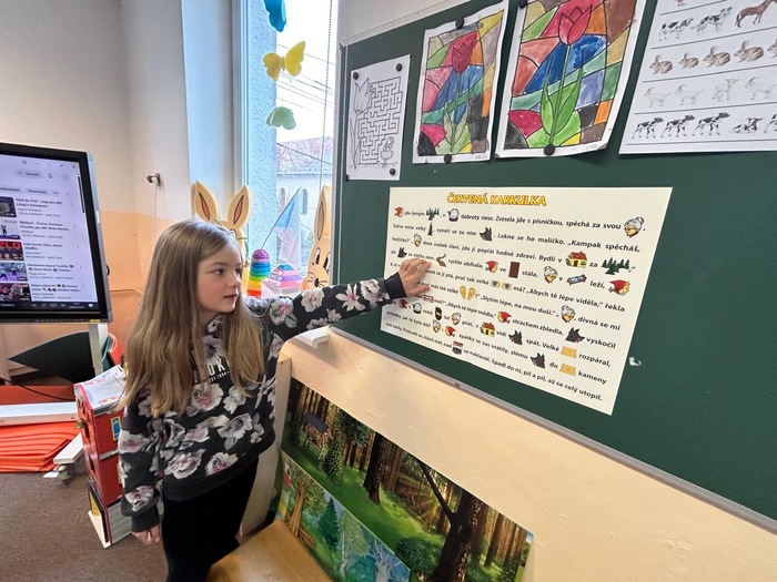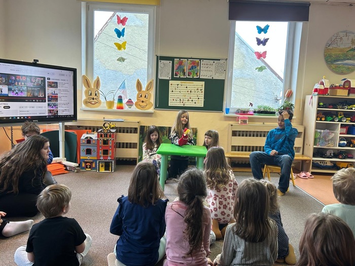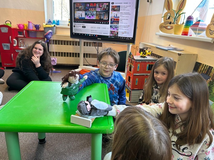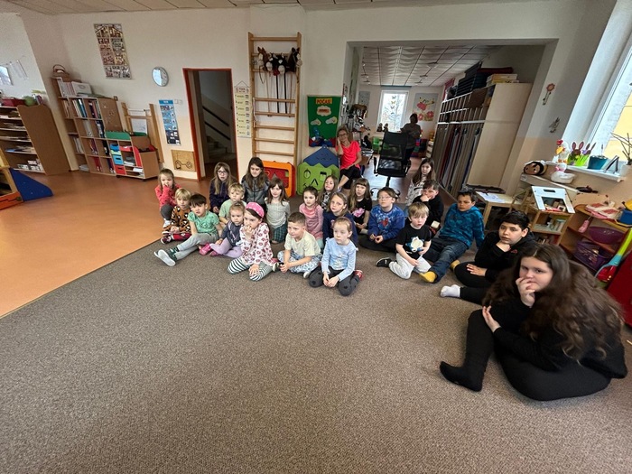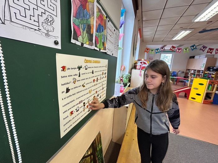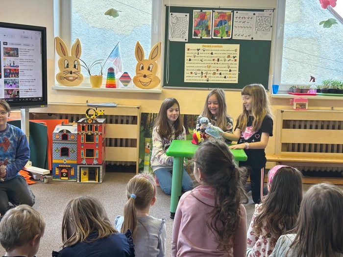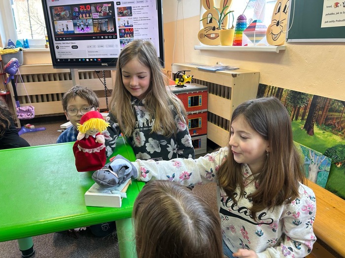 Školáci četli dětem v MŠ pohádku O Červené Karkulce. Poté jim zahráli loutkové divadlo a následovalo společné plnění úkolů, při kterých si děti vyzkoušely spolupráci, tvořivost i porozumění příběhu.