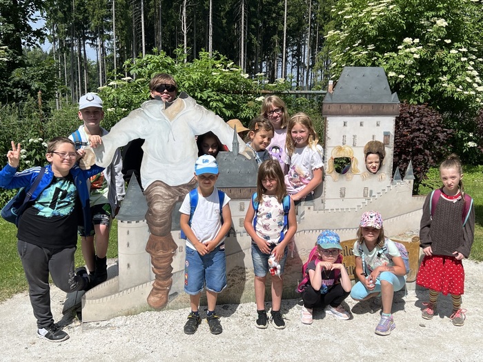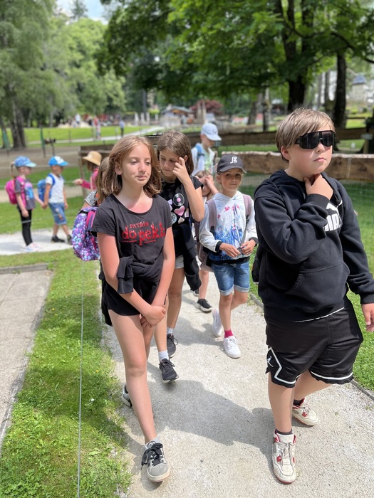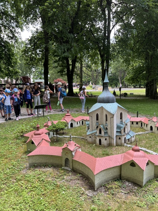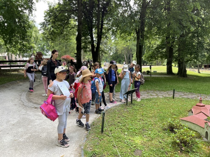 Děti z mateřské školy následně pokračovaly po přírodní stezce kolem rozhledny směrem ke kolonádě, kde si užily krásy lázeňského prostředí. Předškoláci se poté připojili ke školákům a společně navštívili park Boheminium, kde děti s velkým zájmem obdivovaly detailní miniatury významných českých památek.
