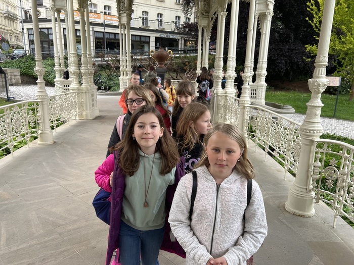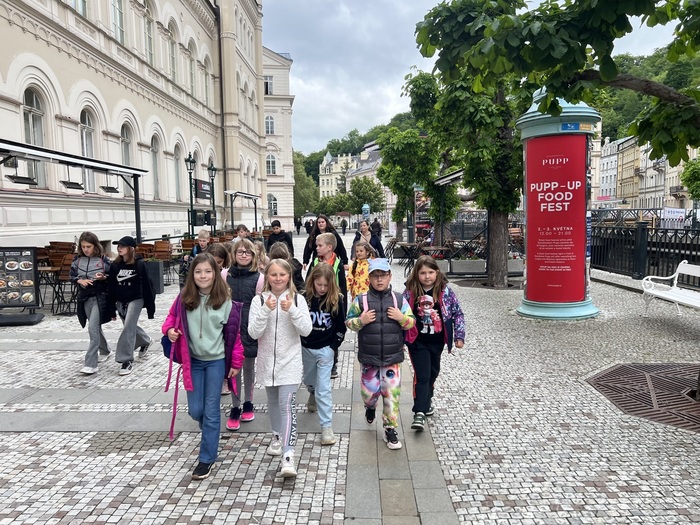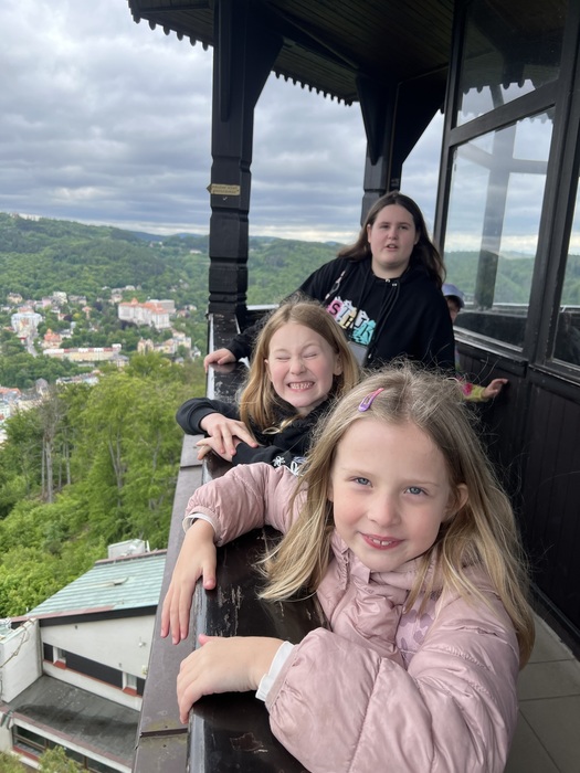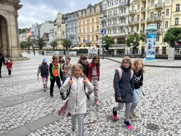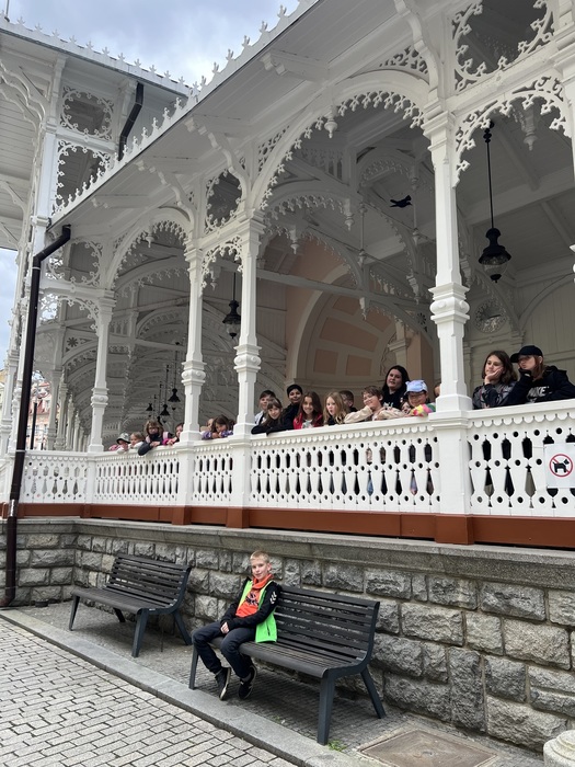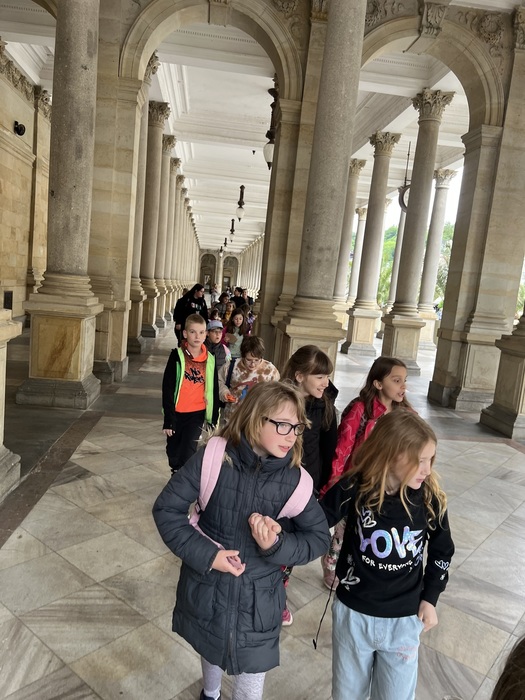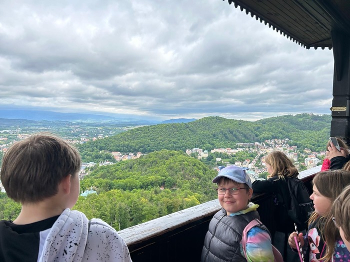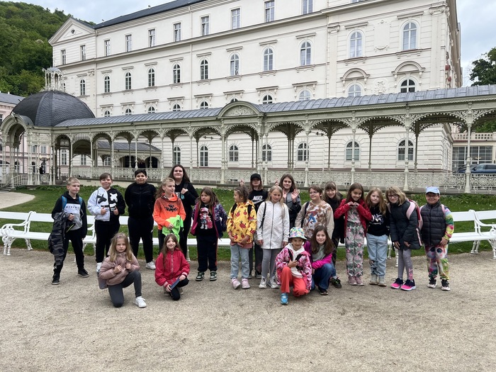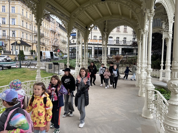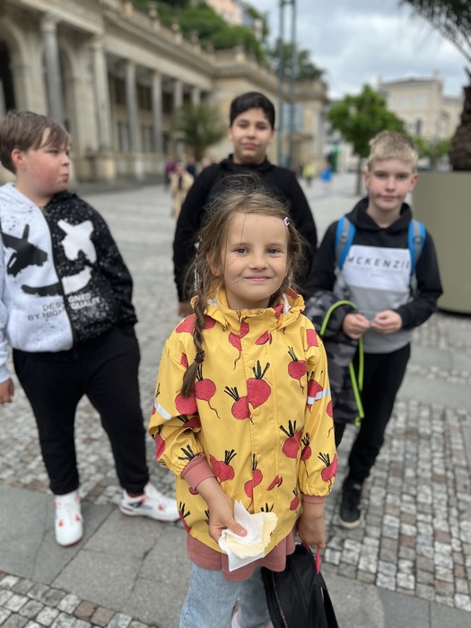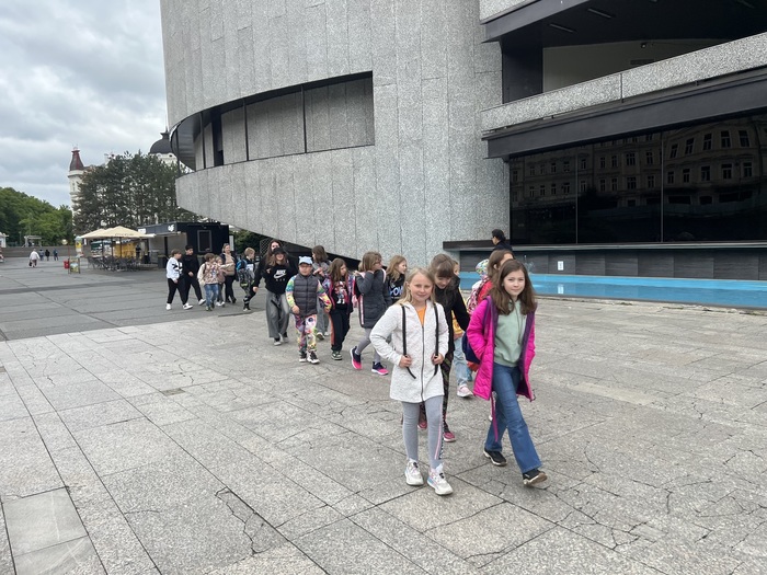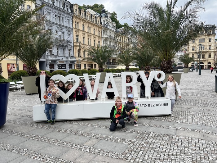 Děti vyrazily na výlet do Karlových Varů. Navštívily rozhlednu Diana, Motýlí dům a prošly se po kolonádě k pramenům.